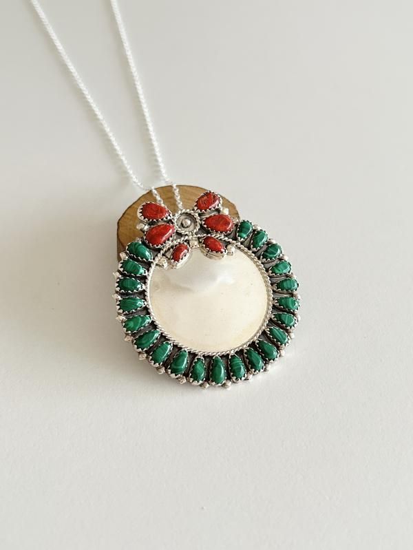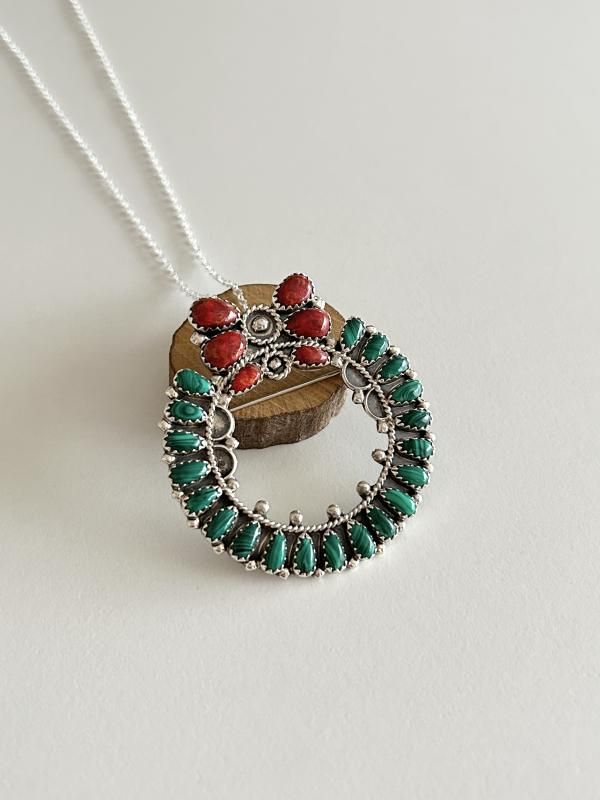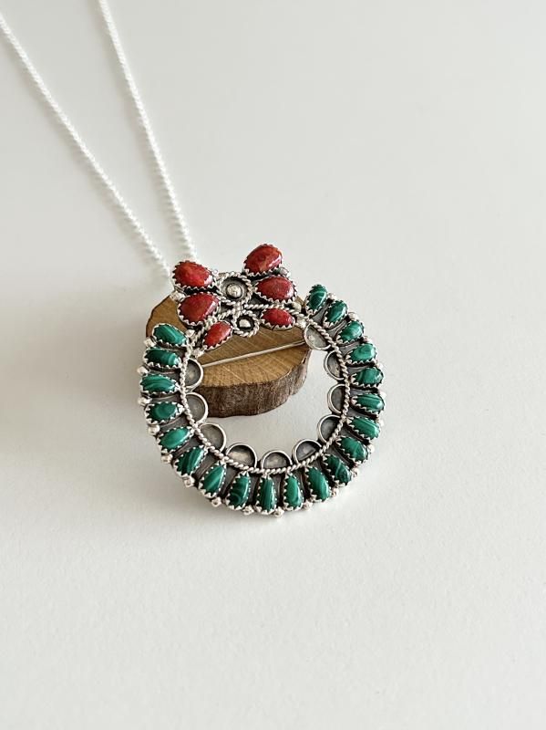 ナバホ族 マラカイト&コーラルクリスマスリースペンダントトップ&ピン