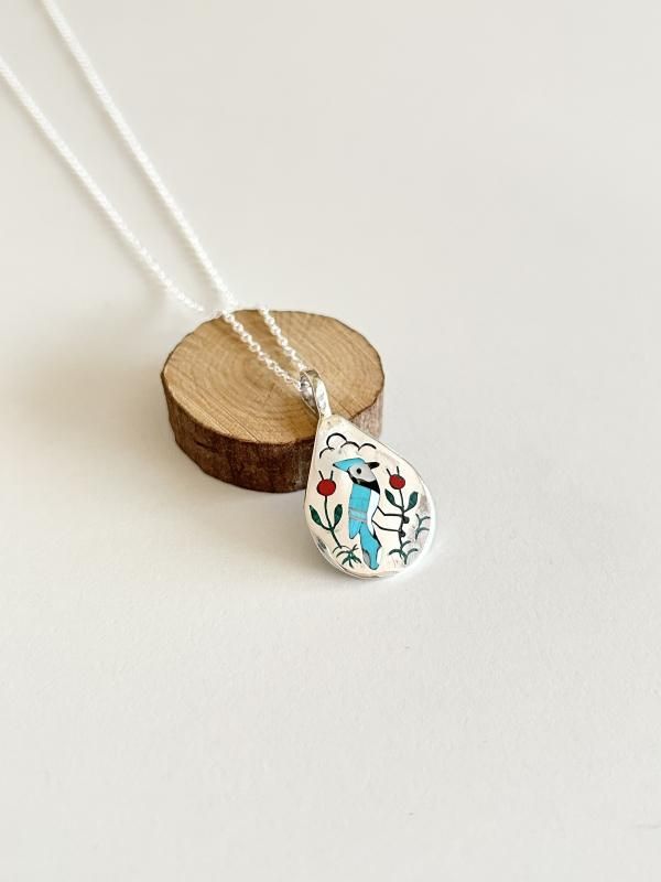 ズニ族 マルチカラーインレイブルージェイペンダントトップ
