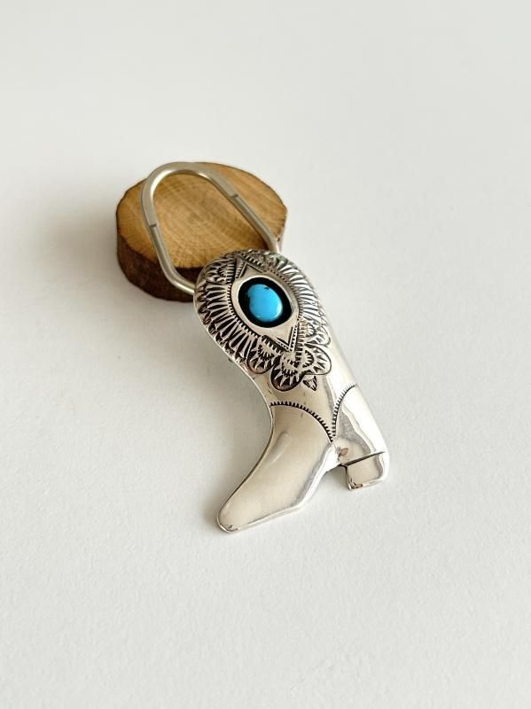 ナバホ族 キングマンターコイズウエスタンブーツキーホルダー